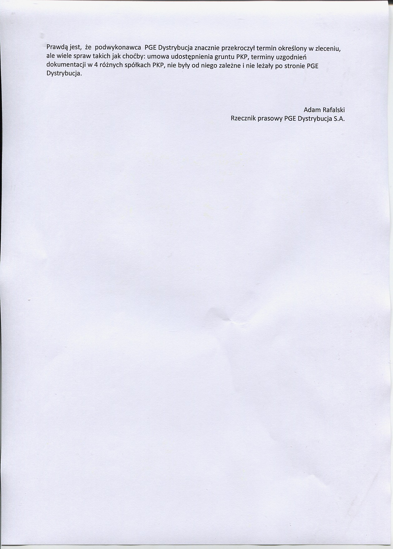 Poniżej przedstawiamy treść sprostowania wystosowanego z PGE Dystrybucja do redakcji tygodnika Miejscowa na Weekend: