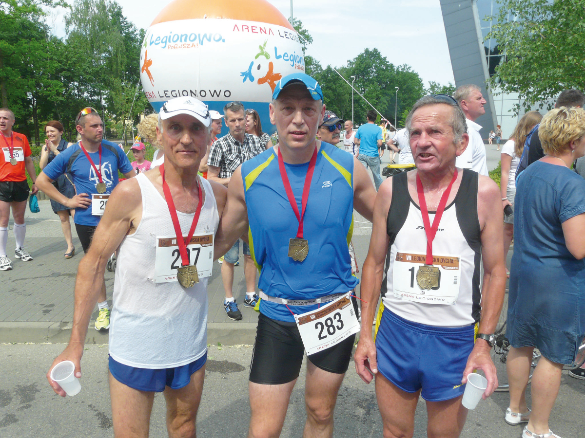 Dwójka ciemnoskórych „łowców nagród”, biegnąc razem od startu do mety, kilkunastu uczestników-amatorów zawodów po prostu zdublowała. Kenijczycy trzeciego na mecie Pawła Raczyńskiego wyprzedzili o blisko trzy minuty. Nie udało im się jednak „wykręcić” najlepszego wyniku wszech czasów. Do rekordu trasy legionowskiego biegu zabrakło im zaledwie kilku sekund. Trzeba jednak od razu dodać, że Legionowska Dycha ma w zasadzie swoje dwa rekordy. Ten absolutny miał jeszcze miejsce na tzw. Trasie Ratuszowej (start i meta pod legionowskim Ratuszem) i ustanowił go S. Cvietkow z Kowla na Ukrainie (30:06). Polski Yared Shegumo już pod Areną Legionowo uzyskał czas – 30:48, a przed rokiem chotomowianin, Emil Dobrowolski jeszcze lepszy – 30:37; Czyli dwaj Kenijczycy, niedzielni zwycięzcy z czasem 30:11 „coś tam” jednak pobili. - Oni byli poza zasięgiem – mówił po biegu trzeci na mecie. 24-letni Paweł Raczyński z Annopola nad Wisłą (reprezentujący klub z Kraśnika). - To inna zawodowa „þółka”. Ja chciałem pobić swój rekord życiowy (31:31), bo lubię takie płaskie trasy. Niestety nie udało się, bo chyba było za gorąco. Atmosfera zawodów wspaniała, przyjaźni kibice na trasie – mówił Paweł, który swoją przygodę z bieganiem rozpoczął jeszcze w szkole podstawowej, potem dwukrotnie był w czołówce biegów młodzieżowych Podczas mistrzostw kraju. Godne podkreślenia jest, że tuż za podium, na miejscu czwartym i piątym podczas Legionowskiej Dychy uplasowały się panie. I to w dobrych czasach. Czwarta była Iza Trzaskalska z Terespola (35:30), a piąta Tatyyana Vernygor z zaprzyjaźnionego z Legionowem ukraińskiego Kovla (35:39). Pani Izie do rekordu legionowskiej trasy zabrakło zaledwie czterech sekund. Dodajmy, że najlepszym legionowianinem był ósmy na mecie Maciek Milewski (37:07). Tegoroczną Legionowską Dychę ukończyło (zmieściło się w limicie biegu wynoszącym – 1:30:OO) ukończyło blisko 300 biegaczy (dokładnie 286). Frekwencja mniej liczna niż poprzednio, ale… Długi weekend miał z pewnością wpływ na chętnych. Również wiele podobnych imprez biegowych w okolicach „przerzedziło” legionowską stawkę. Warto koniecznie jednak podkreślić, że w biegach młodzieżowych, po biegu głównym, wystartowało co najmniej drugie tyle młodych i zupełnie młodziutkich (w biegu brały udział pięciolatki, także dzieci młodsze) sympatyków biegania dla zdrowia! Cieszy także rekordowy udział legionowian w tegorocznej imprezie. Moda na bieganie w Legionowie przynosi korzyści. Nic więc dziwnego, że prezydent Legionowa, Roman Smogorzewski (starter honorowy, a potem wręczający puchary najlepszym) publicznie zadeklarował, że za rok postara się wystartować w kolejnej Legionowskiej Dysze. Na koniec kilka zdań uznania dla legionowskich organizatorów. Brawa dla pracowników Areny Legionowo, także przyjaznych biegaczom kibiców, profesjonalnego spikera red. Bogdana Saternusa, także legionowskich strażaków (m.in. za dwie kurtyny wodne na trasie) i jednego z głównych sponsorów imprezy legionowskiego Przedsiębiorstwa Wodno-Kanalizacyjnego, którego obecność pozwoliła biegającym w upale uzupełniać płyny.
