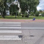 Znak drogowy informujący o przejściu dla pieszych na ul. Wysockiego został zniszczony. Mieszkaniec zgłosił to władzom miasta, ale jego interwencja nic nie dała – przejście dla pieszych jest teraz niewidoczne