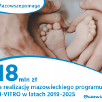 Dobra informacja dla par z Mazowsza, które starają się o dziecko. Decyzją zarządu województwa mazowieckiego program in vitro będzie realizowany do 2025 r. Ponadto na jego realizację w latach 2023-2025 wygospodarowano dodatkowe 10,5 mln zł. W sumie na ten cel samorząd województwa mazowieckiego przeznaczy 18 mln zł