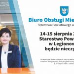 W piątek, 14 sierpnia i sobotę, 15 siepnia br. Starostwo Powiatowe w Legionowie będzie nieczynne