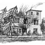 Dawny dom po schodkach. Niestety, już nie ma tego drewniaka. Został rozebrany kilka lat temu. Wraz z pawilonową, parterową zabudową – z księgarnią i dawną siedzibą Towarzystwa Przyjaciół Legionowa tworzył południową pierzeję legionowskiego rynku.