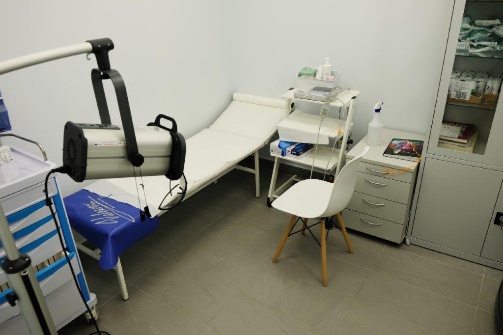 Dysponujemy nowoczesnym sprzętem do rehabilitacji, salą do ćwiczeń oraz nowoczesnym gabinetem fizjoterapeutycznym, w którym wykonujemy zabiegi pola magnetycznego, krioterapii oraz laser. Posiadamy salę odpoczynku wyposażoną w fotele i łóżka do masażu oraz odpoczynku.