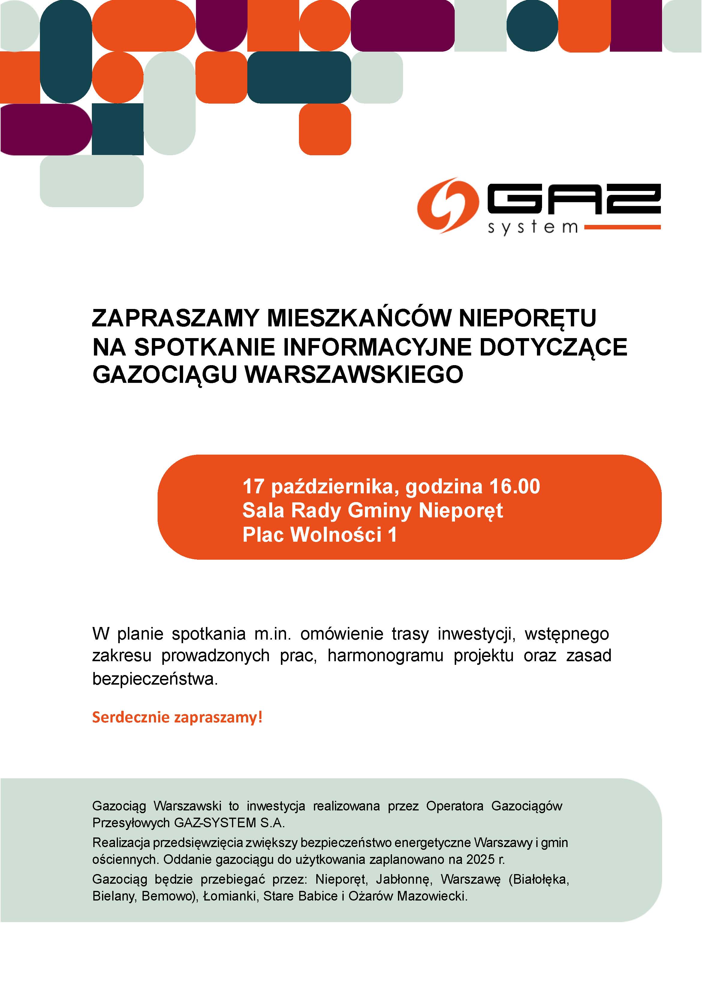 Ruszyły spotkania z mieszkańcami – 17 października odbędzie się spotkanie w Nieporęcie.