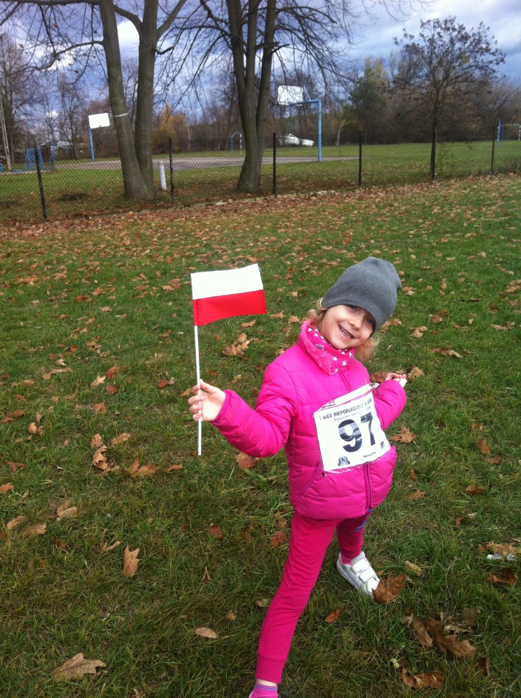 Zdjęcie mojej wnuczki, która w jesiennym otoczeniu wzięła udział w Biegu Niepodległości na 1918m (i bieg ten ukończyła!!!).