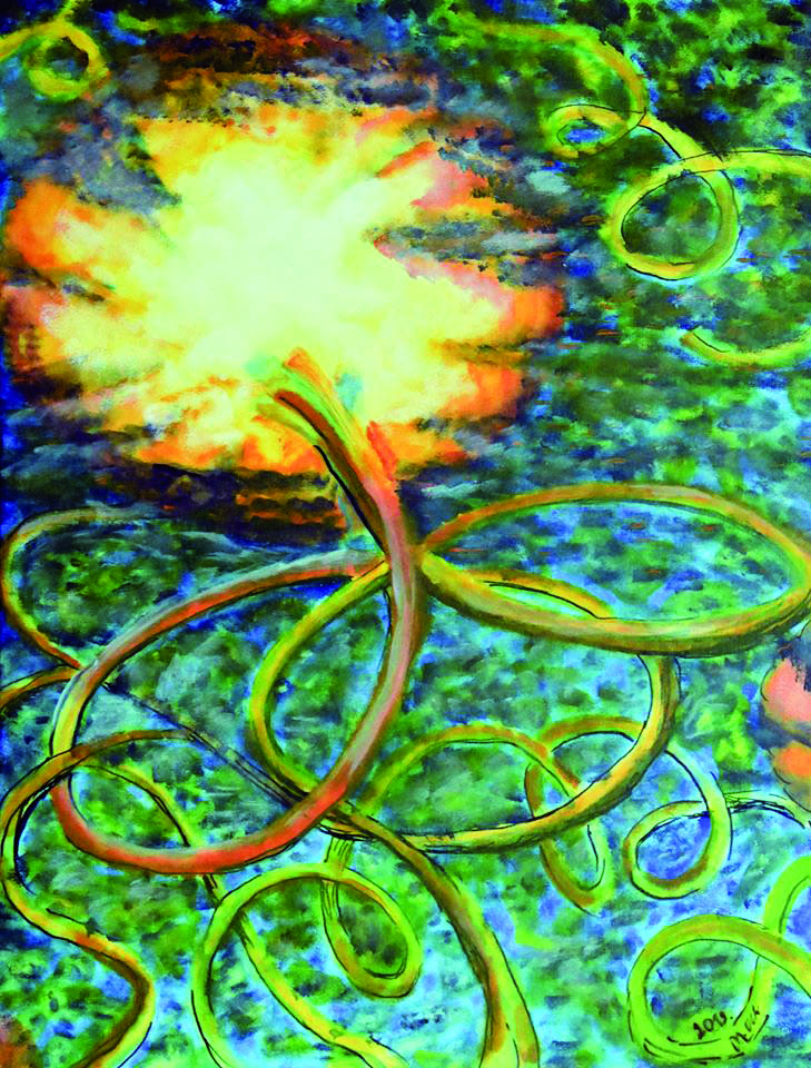 (MO) Pejzaże i abstrakcja – to są głównie tematy moich obrazów. Zdarzają się jednak również kwiaty i martwa natura, najczęściej są to obrazy olejne. Wiele z nich powstało na licznych plenerach malarskich, w których uczestniczyłam. Te plenery były dobrą szkołą, gdyż w czasie ich trwania doskonaliliśmy swój warsztat podpatrując kolegów malarzy.
