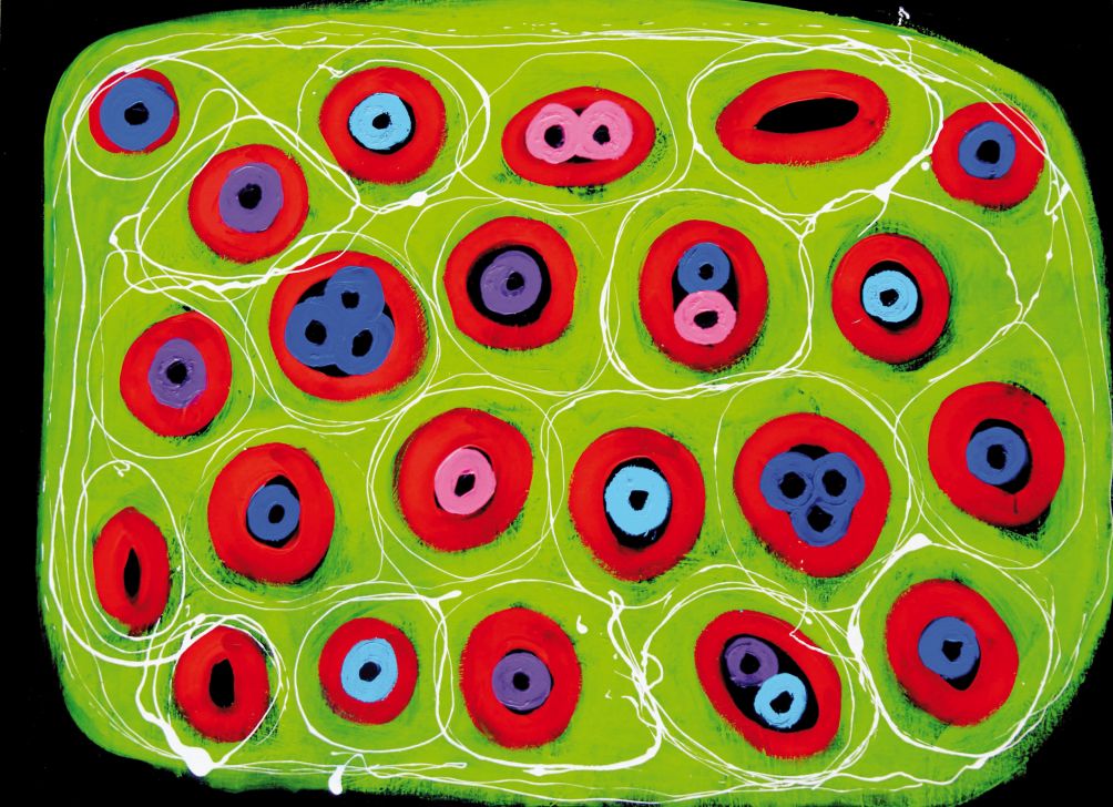 (PZ) Z miłą chęcią. Myślę, że ciekawy do pokazania byłby cykl malarski mikro-makro fizyczny wraz z obrazami odnoszącymi się do ewolucji życia na ziemi oraz budowy komórkowej. Artystą który wcześniej już poruszał ten temat ze stricte ewolucyjnego punktu widzenia jest Norman Leto w swoim znakomitym filmie Photon. Jego fabularyzowany paradokument jest pełen czarno-białych wytrawnych animacji obrazujących rozwój żywych form na ziemi. Ja w swoich pracach malarskich używam koloru i ekspresji, chociaż niektóre prace zahaczają też o op-art.
