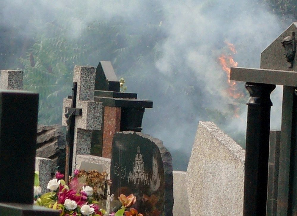 W poniedziałek (31.07) na cmentarzu w Legionowie, w sektorze C. w godzinach południowych nad nekropolią unosiły się kłęby dymu, więc przerażeni mieszkańcy wezwali Straż Pożarną, która przyjechała błyskawicznie.