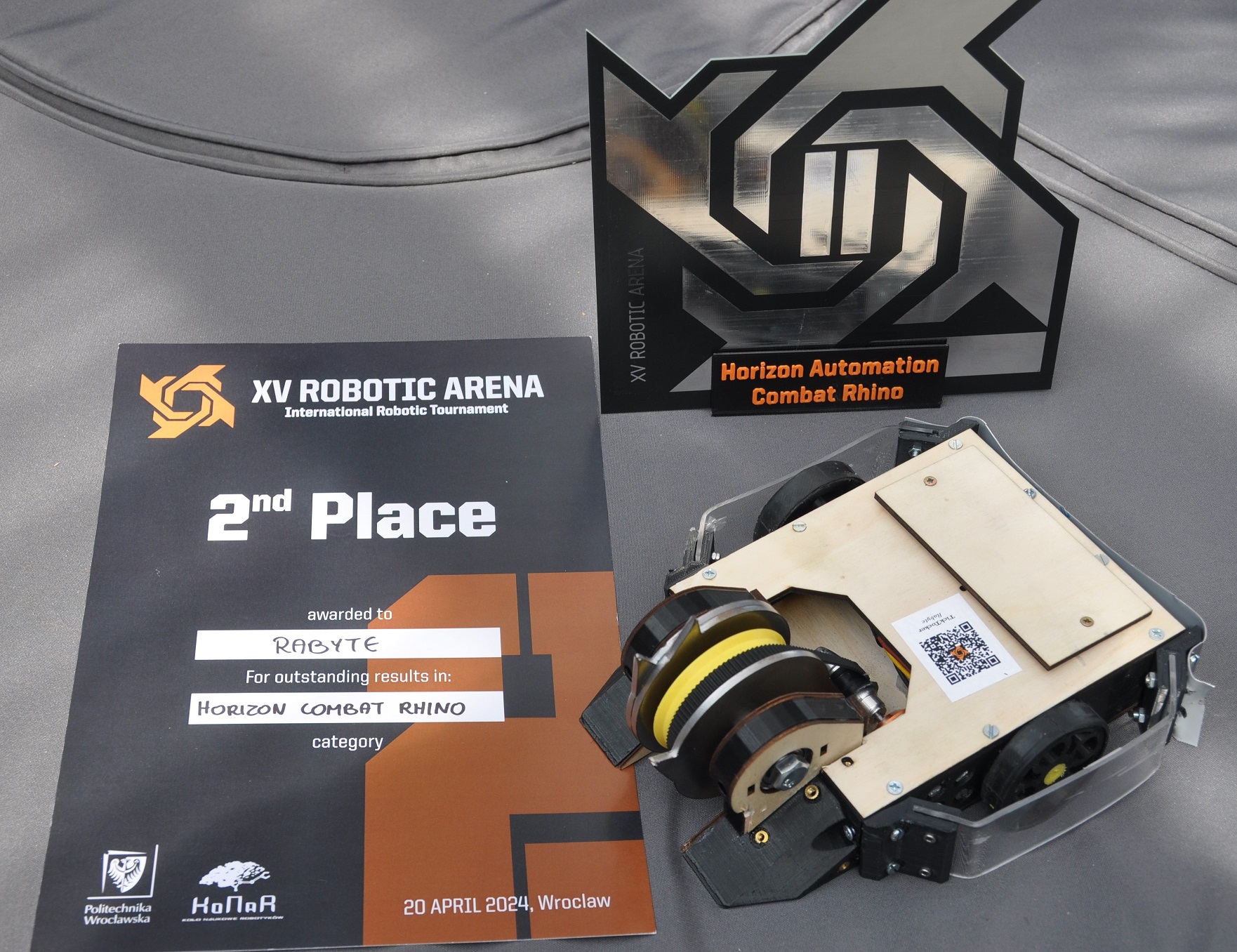 Adam Kita – Bardzo dziękuję. To, że udało się nam odnieść sukces zawdzięczamy ciężkiej pracy całego zespołu. Wrocławskie zawody Robotic Arena zgromadziły startujące w wielu konkurencjach drużyny z wielu krajów. My tym razem uczestniczyliśmy wyłącznie w kategorii Combat – czyli robotów walczących. W tej kategorii oprócz drużyn z Polski wyróżniali się liczebnością oraz poziomem swoich konstrukcji Włosi i Litwini.