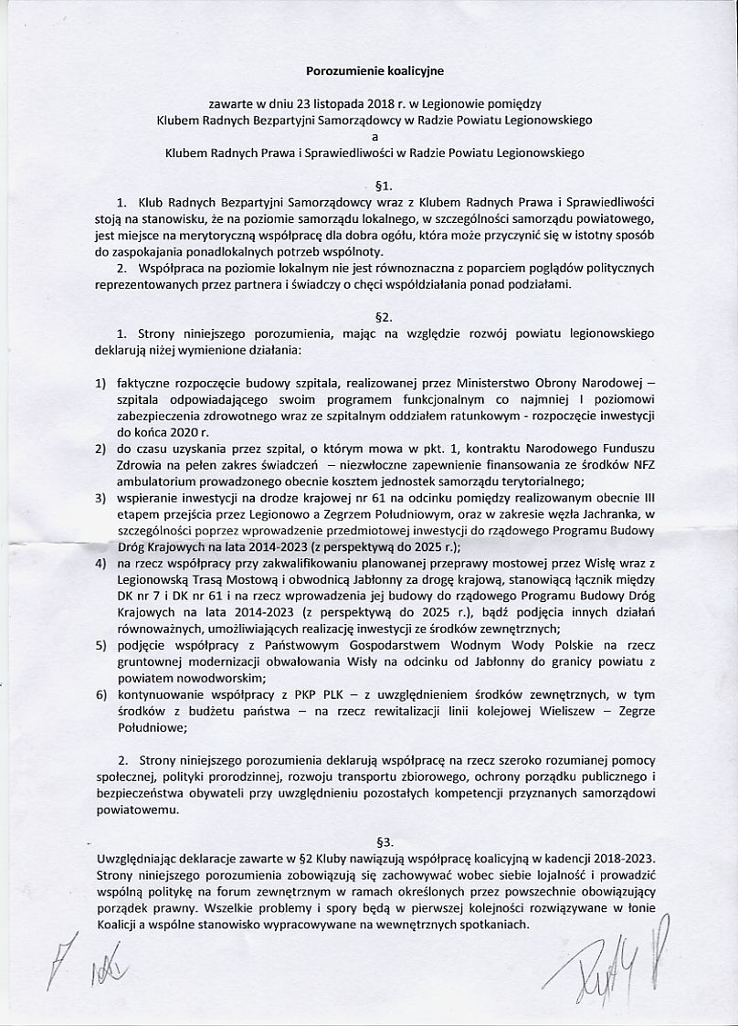 Tylko u Nas pełna treść i skan porozumienia Koalicyjnego Bezpartyjnych Samorządowców i Prawa i Sprawiedliwości