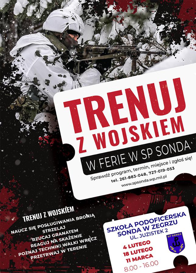 Szkoła Podoficerska Sonda w Zegrzu zaprasza do wzięcia udziału w jednodniowych bezpłatnych szkoleniach pod nazwą “Trenuj z wojskiem”