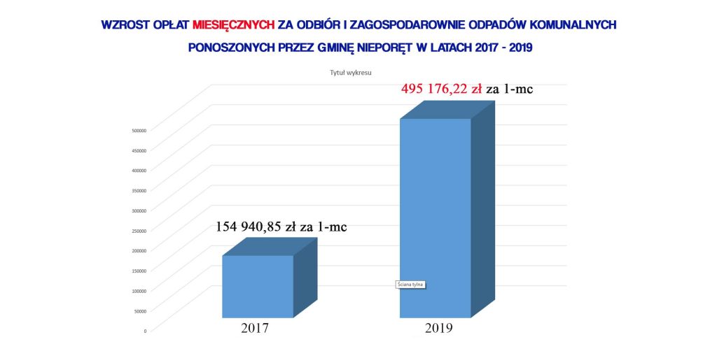 W porównaniu z rokiem 2017, gdy miesięczny koszt odbioru i zagospodarowania odpadów wynosił w gminie Nieporęt ok. 155 000 zł, jest to wzrost o blisko 320 % !