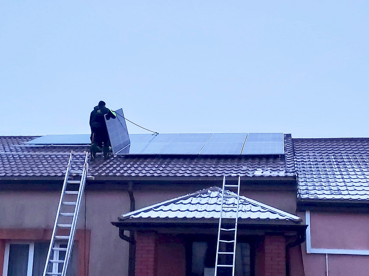 Montaż instalacji fotowoltaicznej na budynku Ochotniczej Straży Pożarnej w Trzcińcu (źródło: gmina Pułtusk)