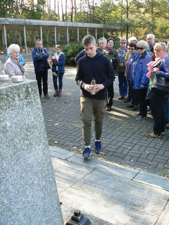 Następnie udaliśmy się do wsi Nowe Polesie, gdzie walczyła 5 kompania i pluton z 6 kompanii, z legionowskiego batalionu pod dowództwem por. Jana Raczkowskiego „Motora”. Znajduje się tam pomnik z tablicą poświęconą zmarłym z wypadu, którzy prowadzili rekonesans bojowy w okolicach Leoncina. Stamtąd pojechaliśmy do Wiersz, gdzie zatrzymaliśmy się w dwóch miejscach. Pierwsze znajduje się przy kościele Niepokalanego Serca NMP. Kościół wzniesiony został na miejscu placu apelowego partyzanckiego obozowiska Grupy Kampinos AK. Znajduje się tam wystawa poświęcona Zgrupowaniu Kampinos i Niepodległej Rzeczypospolitej Kampinowskiej. A na budynku kościoła znajduje się tablica poświęcona legionowskiemu batalionowi. W drugim miejscu zobaczyliśmy pomnik „Niepodległej Rzeczypospolitej Kampinoskiej” oraz cmentarz powstańczy, na którym pochowano 54 żołnierzy AK, w tym z naszego oddziału.