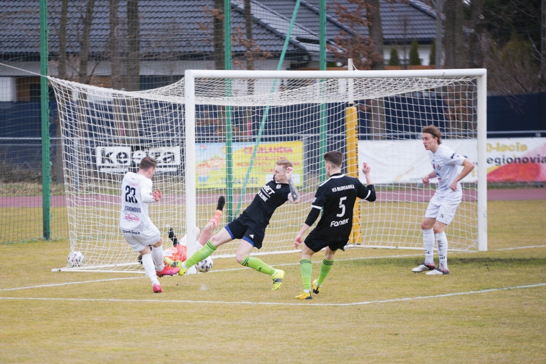Spotkanie było w miarę wyrównane. W pierwszej połowie optyczna przewaga należała do naszego zespołu. Udokumentowali ją bramką z rzutu karnego w 31 minucie. Po faulu na Andrzeju Trubesze, jedenastkę wykorzystał kapitan zespołu Patryk Koziara. Goście mogli doprowadzić do wyrównania jeszcze przed przerwą (44’), ale z groźnym strzałem z woleja świetnie poradził sobie młodziutki legionowski bramkarz, Jan Krzywański.