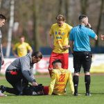 - Karol Barański mimo pomocy masażysty Marcina Góreckiego nie był w stanie dokończyć tego meczu Fot. fotoMiD