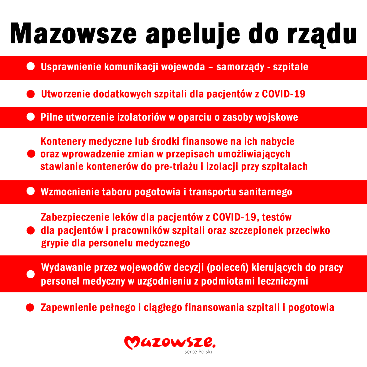 W związku z zaistniałą sytuacją radni województwa mazowieckiego w swoim stanowisku przedstawiają wypracowane z dyrektorami placówek medycznych propozycje działań: