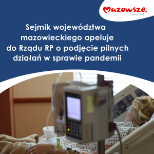 W trosce o bezpieczeństwo mieszkańców, zapewnienie im odpowiedniego poziomu leczenia, a także udzielenia wsparcia mazowieckim placówkom medycznym, radni województwa mazowieckiego podczas ostatniej sesji sejmiku podjęli stanowisko, będące równocześnie apelem do rządu o podjęcie pilnych działań w przeciwdziałaniu COVID-19.