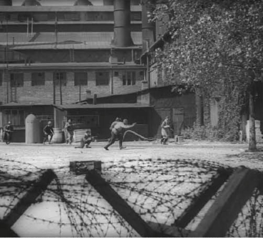 Szturm 1 sierpnia 1944 r. został przeprowadzony od wewnątrz kilkoma oddziałami działającymi w różnych rejonach terenu należącego do Elektrowni. Po zdobyciu zakładu zrealizowano sceny filmowe z udziałem uczestników zwycięskiego szturmu; widoczne zdjęcie jest kadrem z takiego nagrania