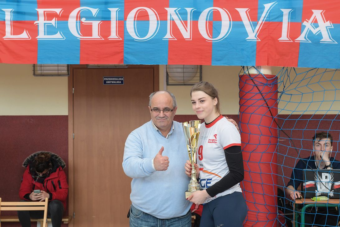 Prezes Legionovii, Sławomir Supa wręczył puchar za ćwierćfinałowe zwycięstwo kapitan legionowianek, rozgrywającej Milenie Montowskiej