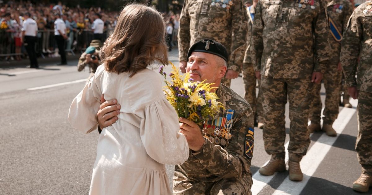 Stojący na czele parady podpułkownik Wołodymyr Fedczenko od lat mieszka z rodziną w Irpieniu, mieście, które stało się centrum walk o ukraińską stolicę. Choć latem skończył swoją służbę w ukraińskim wojsku, od kilku dni bierze udział w walkach na przedmieściach ukraińskiej stolicy, pomaga również w ewakuacji cywilów z rejonów walk. Jego żona, która również służy w ukraińskiej armii, koordynuje ewakuacje ludności z bombardowanych miast i pomaga im znaleźć miejsca do życia w innych ukraińskich miastach.